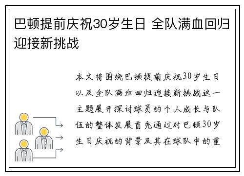 文章摘要:在足球世界中,球员的训练态度和精神面貌直接关系到球队的战斗力和长远发展。近期,安德烈·孔帕尼在公开场合严厉批评了阿兹努在训练中的懈怠行为,特别强调了对球员偷懒行为的零容忍态度。孔帕尼作为一位经验丰富的球员和教练,他的言辞充满了警醒与严苛。在这篇文章中,我们将从四个方面对孔帕尼的批评进行详细...